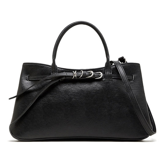 • Retro Genuine Leather Crossbody Bag with Signature Ring-Buckle Strap