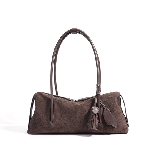 • Matte Genuine Leather Tassel Pendant Shoulder Pillow Bag