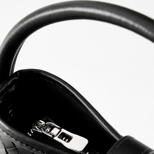 Crafted from premium top-layer sheepskin, this elegant bucket bag showcases intricate woven textures for a refined yet trendy look. Its medium-sized silhouette features a secure zipper-clasp closure and a soft fabric-lined interior with a phone pocket, zip compartment, and ID holder. With a medium-firm texture and dual carrying options, it’s perfect for elevating your everyday commute or casual outing.