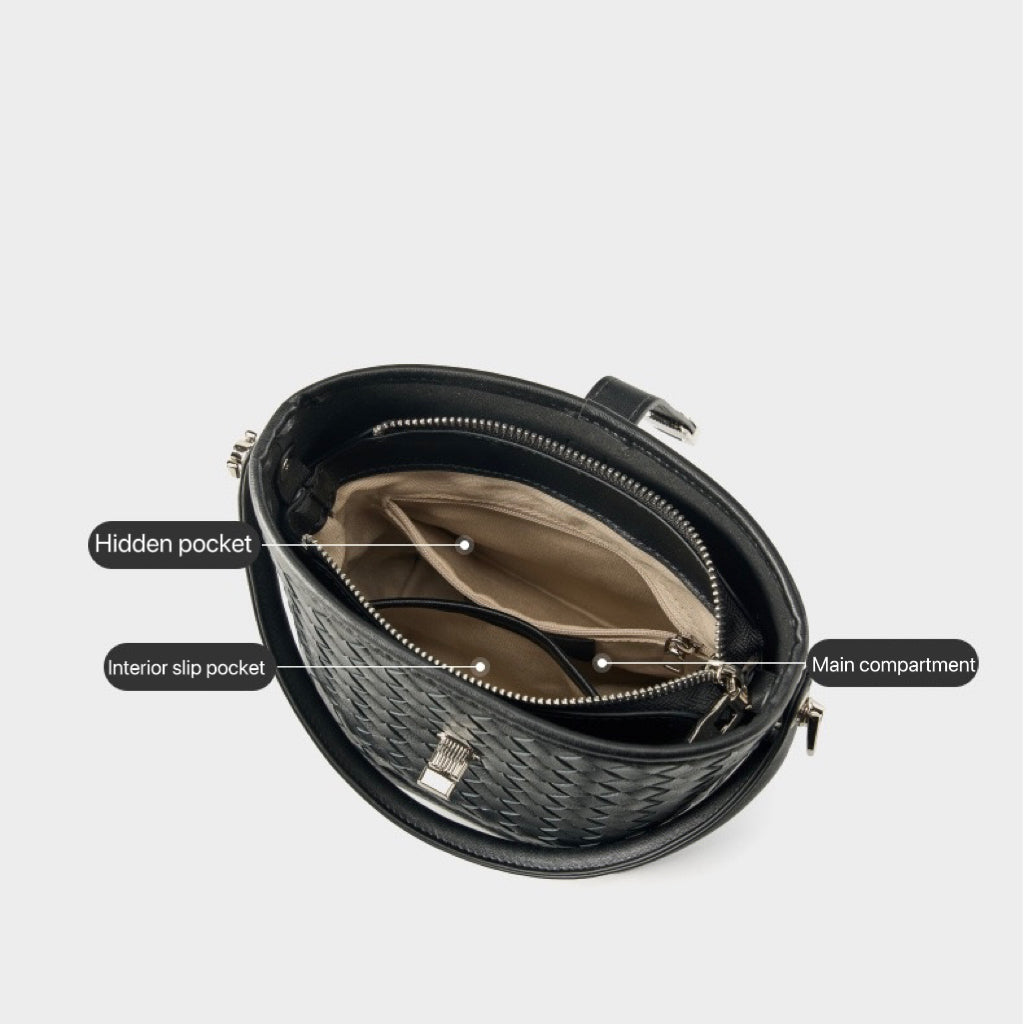 Women’s Genuine Sheepskin Woven Bucket Bag – Elegant Commuter Style